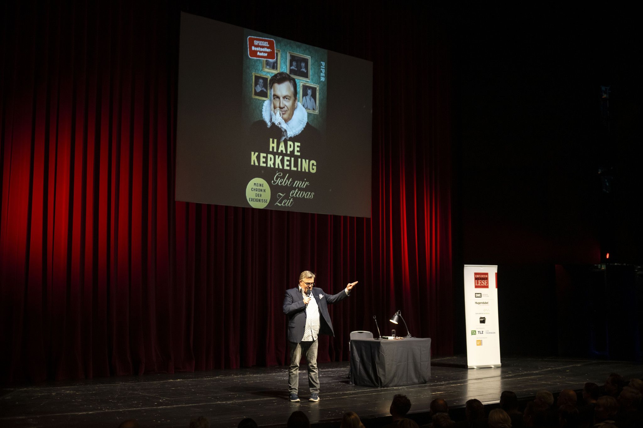 Klassische Lesung, freies Bühnenspiel muntere Plauderstunde - der Abend in der Erfurter Oper ist genau wie das Buch vieles in einem. Immer wieder bittet Hape Kerkeling um Fragen und erhält sie reichlich ohne jegliche Verlegenheitspause. Die Antworten sind, nichts anderes erwartet man, üppig mit Witz, Tiefgang und einer guten Prise Selbstironie ausgestattet.
