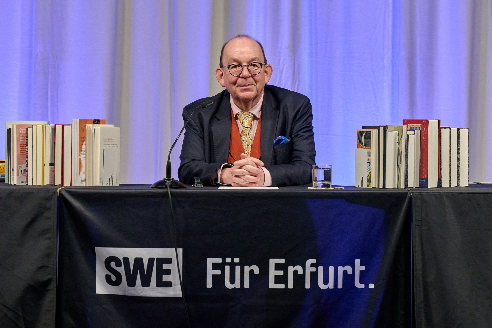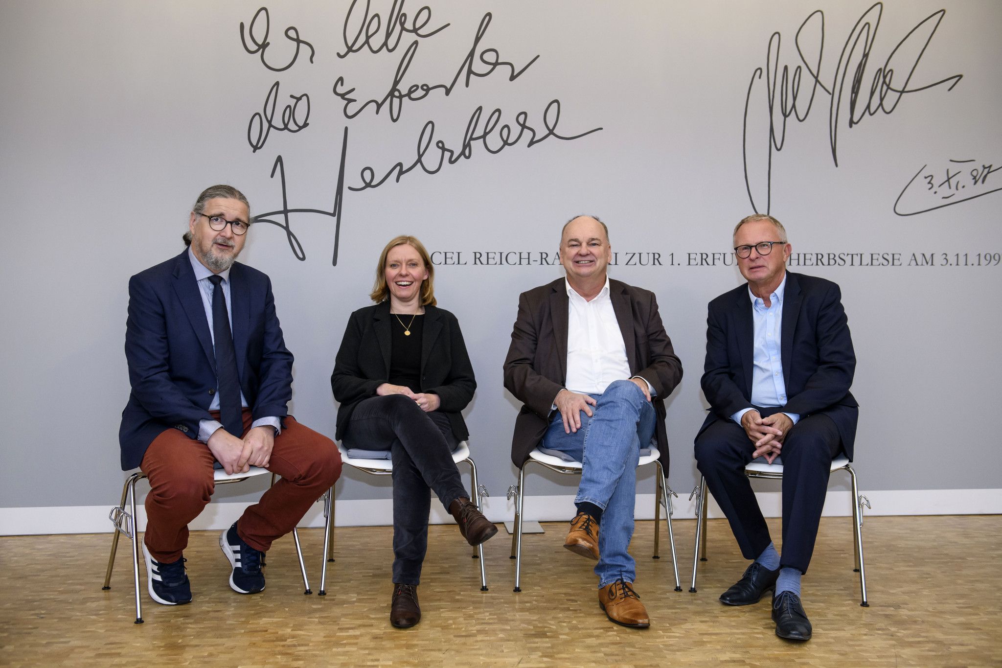 Unser größtes Projekt ist die Reihe, für die wir unseren Verein gegründet haben: die ERFURTER HERBSTLESE. Sie findet alljährlich zwischen September und Dezember statt und lockt Bücherfreund:innen aus ganz Thüringen in die Landeshauptstadt. Im November 1997 startete die Lesereihe ihr erstes Programm mit zehn Veranstaltungen. Der Auftakt bleibt unvergessen: Marcel Reich-Ranicki vor mehr als 700 Gästen mit einem Vortrag über Heinrich Heine. Ins Gästebuch schrieb Deutschlands einflussreicher Literaturkritiker an jenem Abend: