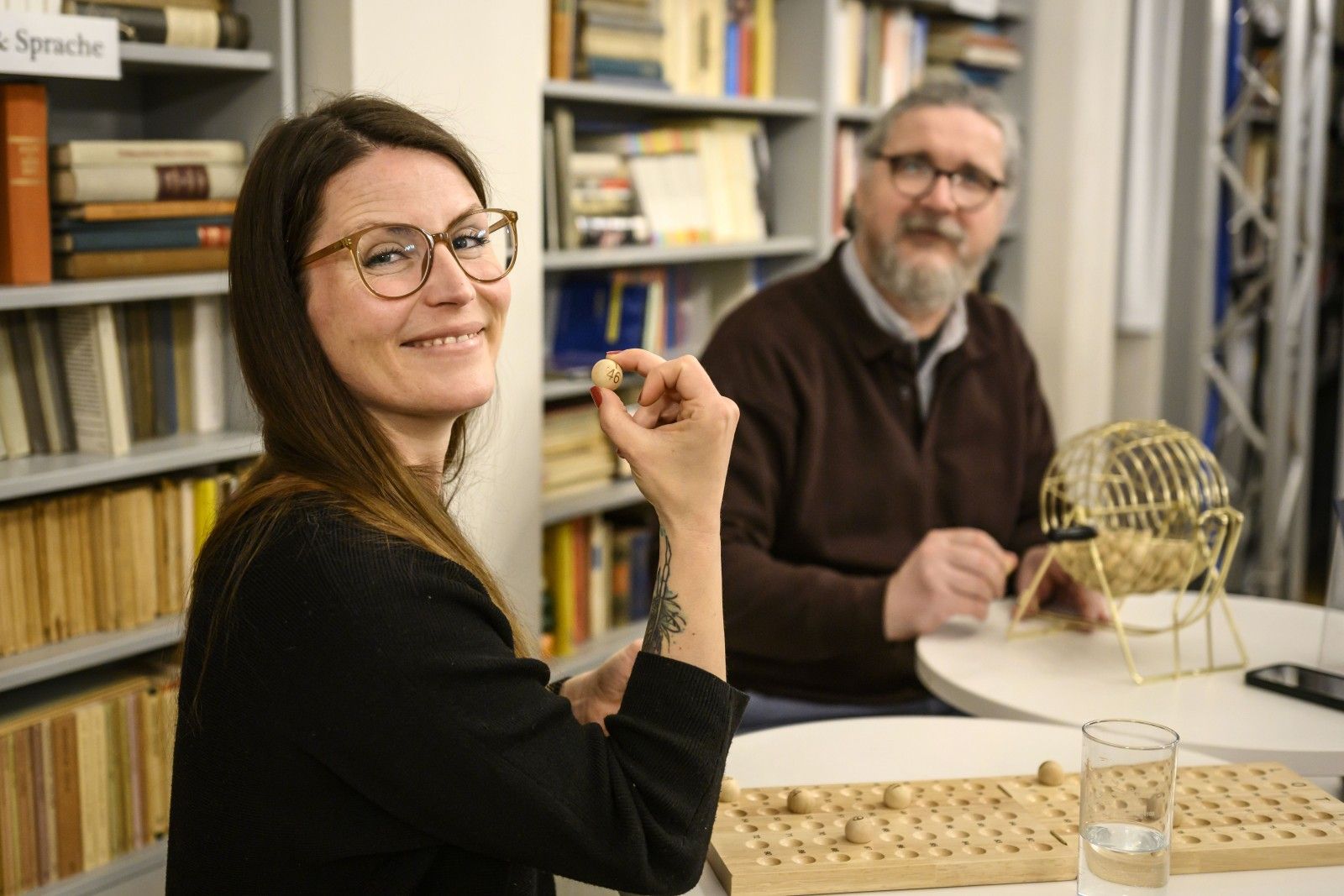 Wie immer werden die durchnummerierten Kugeln aus der Lostrommel gezogen, bis ein Gast auf seinem Schein die ersten fünf der insgesamt 75 Zahlen in einer waagerechten oder senkrechten Reihe ankreuzen konnte. Für den Ruf „Bingo“ gibt es dann den ersten Gewinn, einen besonderen Schatz aus dem Buchasyl.