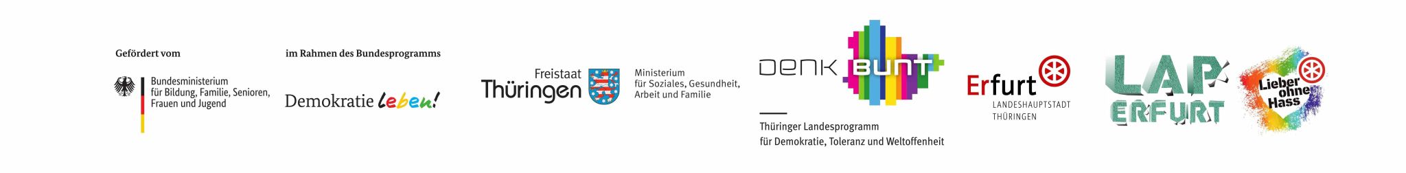 Die Lesung der Geschichtenwerkstatt wird von der Kulturdirektion der Stadt Erfurt und durch den Lokalen Aktionsplan gegen Rechts gefördert und findet in Kooperation mit dem Kulturhaus Dacheröden sowie dem Freien Radio Erfurt e.V. statt.