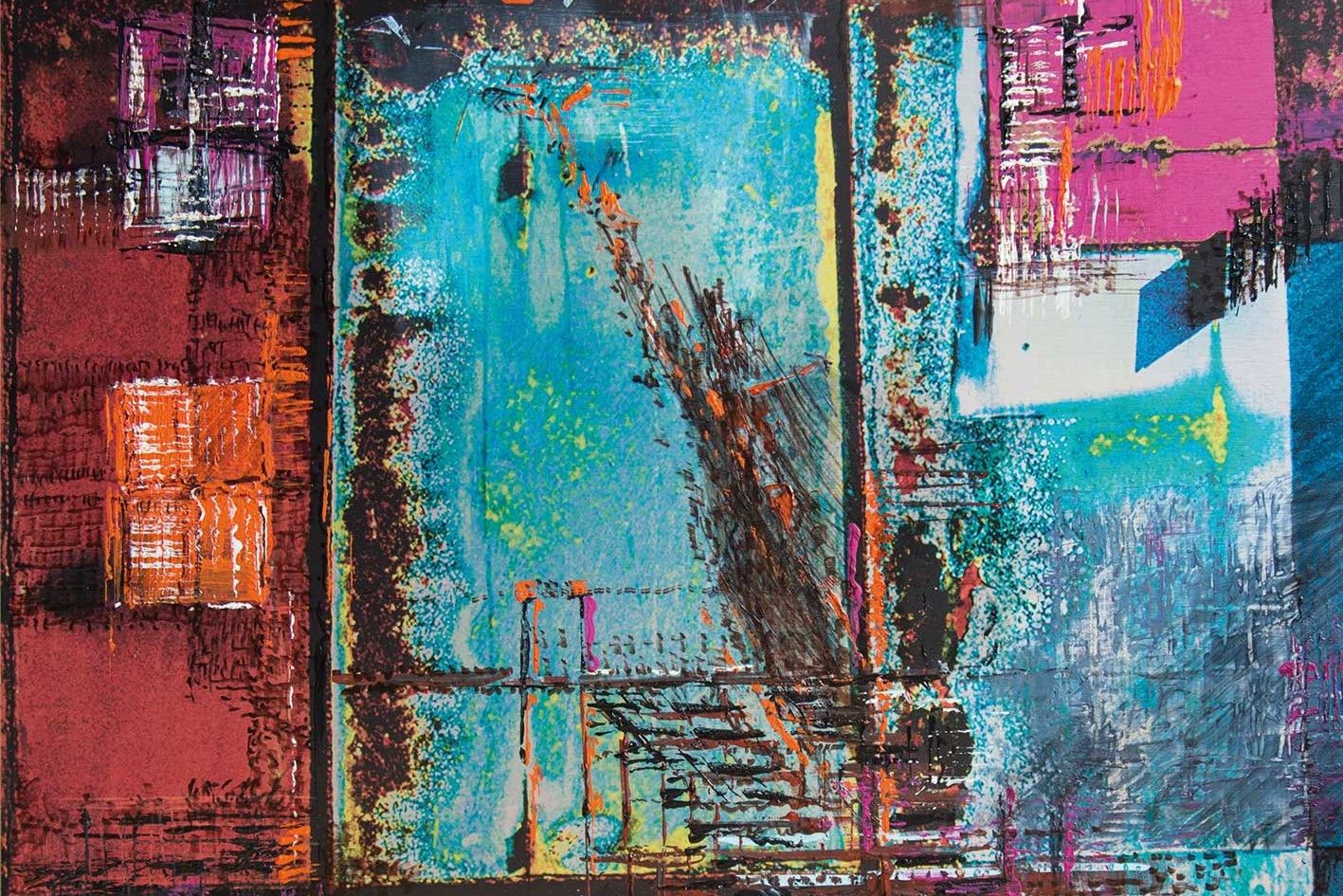 Im Zentrum steht die menschliche Figur mit digitaler Verfremdung und abstrahierten Raumkonstruktionen. Die Linien sind leise, behutsam, verspielt oder schroff, wütend und spannungsgeladen – als spontaner Ausdruck von Frage und Antwort. Der Weg von einer Idee, einer flüchtigen Geste bis zu einem fertigen Werk ist lang und filigran; Ungeduld trifft auf Perfektion.