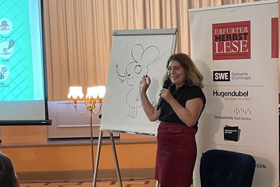 Tanya Lieske lässt die Kinderschar beim Vorlesen lebendig werden - mit viel Sprachwitz und versierter Radiostimme. Wirbelwind Sybille Hein ist mit Stift und Farbe dabei und lüftet dabei ein, zwei, drei Geheimnisse, die gar nicht im Buch vorkommen. Was trägt so ein Papst eigentlich wirklich unter seiner Robe? Wie knotet man Lehrer an einen Marterpfahl? Und welchen Migrationshintergrund haben Dinosaurier?